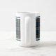 Coffee mug with the tartan for Clan Colquhoun and Calhoun, and its septs including Caan and MacCowan. Navy blue, green and black Scottish plaid pattern from 1810, with bright red and white accents.