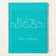This design features a hand drawn illustration of the Columbus, Ohio city skyline on a blue background.