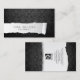 Striking columnist professional business card consisting of a background of a black damask pattern, with a strip ripped from the lower left side, revealing a white background. This is where your name and title appear. On the back, your business logo and contact details appear within the same themed ripped paper effect. Perfect for professional, printing, publishing, writing, literary, literary arts, literature themes.