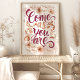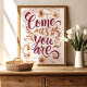 Embrace self-acceptance and radiate authenticity with this heartwarming "Come As You Are" art print. Featuring delicate floral accents in warm, earthy tones and a hand-lettered quote in graceful script, this piece is a gentle reminder to embrace your true self. Perfect for adding a touch of love and compassion to your home or office décor.