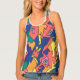 Women's All-Over Print Racerback Tank Top, White Piping, S