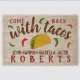 "Come back with tacos" text with a taco illustration, green and red peppers, and your family name, the perfect doormat for foodies. It also includes two custom lines of your text, such as your family name. Use the easy templates to personalize or the design tool to make more detailed changes.