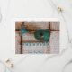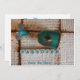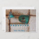 A closeup image of a piece of Matzah and Elijah's cup with the words "Save The Date" fill the front. the back has the words tTe,Date,Place all in turquoise script.