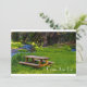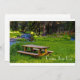 A picnic bench next to a stream with green grass and the (customizable words) "Come Join us!"