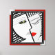 Striking, original design in an intriguing, Art Deco - Egyptian Revival style optical illusion inspired by Janus, the Roman god of Gates & Doors, Beginnings & Endings, War & Peace & significant transitions. Primarily Black & White w/a red faux frame.