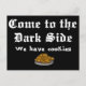 This comical item says 'Come to the Dark Side - We have cookies' in two fancy fonts. Just below the text is a plate of cookies to illustrate the cookies on offer for joining the dark side.
