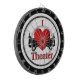 The personalized dart board will be perfect for my daughter's game room in their new house! It was packaged well and arrived with no damage. It is rather sturdy. Because of the weight, I am going to recommend they use an anchor bolt to secure it or nail into a stud behind the drywall. The printing turned out exactly like I saw it on the preview.