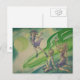 Great illustrative art for a youn girl who likes science fiction, fantasy, and adventure. A watercolor with an illustrative, animated style. A pre-teen age girl in a fun purple dress with wavy hair rides a small comet and waves at her two girl friends, seated on a planetoid, who wave back. The color scheme has different shades of green with touches of purple and greenish blue. Another science fiction fantasy watercolor, this is the third in my "Girls in Space" series.