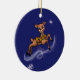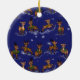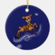 Comet zips through the Christmas sky wearing her bells on one side of this ornament. On the other side the design shows all of the team frolicking in in the sky.