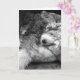 Cute Old English Sheepdog photo is in black and white, with the extremely shaggy dog lounging quite comfortably. Brings a smile to your face!