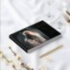 Back cover displays a single line of text above the image of a cross with the letters, "IHS" - the Catholic symbol for Christ. Binding text is also customizable. All text is in foil. Customer has the option of choosing gold, silver or rose-gold.