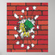 Knockout your friends with this comic book inspired punch. Green monster hand blasts through a red brick wall with cloudbursts and the word Bam! Hand drawn illustration by McBooboo