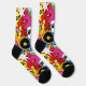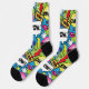 WOW! Retro comic book pop art patterned socks with cartoon speech bubbles, lips, vinyl records and cassette tapes