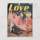 Cover art from a vintage comic book. A pretty redhead kissing a handsome dark haired man. "I Love You" above