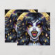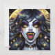 Halloween invitations. Black and gold vampire with golden fangs and eyes comic book pop art ai art. Cool for Halloween or anyone who loves vampires..