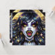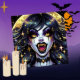 Halloween invitations. Black and gold vampire with golden fangs and eyes comic book pop art ai art. Cool for Halloween or anyone who loves vampires..