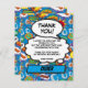 A fun cool comic book superhero birthday thank you card that puts the wham, zap, pow into any superhero's birthday celebration event. Designed by Thisisnotme©