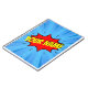 Comic book superhero blue, red and yellow custom spiral notebook. Personalize for the super hero fan in your life.