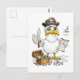 A bold pirate bird guards a wooden chest while studying an old treasure map. This comic‑style illustration blends coastal adventure with playful humor, perfect for maritime décor, quirky character art and fans of imaginative seaside stories.