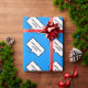 Cute modern gift wrap for men women and kids (boy girl). Blue or change background color.