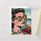Comic Style Art | Woman Watching Hula Dancer Blank Postcard