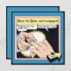 Fun wedding save-the-date announcements featured a vintage style comic of a man placing a very bling diamond engagement ring on a woman's manicured finger. Add your info and spread the word about your special day!