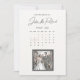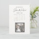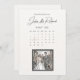 Save the date card with marked date on the calendar layout, with comic book style postage stamp ilustration showing picture of happy wedding couple.