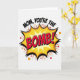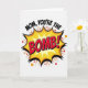 This card features a bright comic-style burst on a white background, like a cheerful explosion of affection ❤️. A jagged yellow starburst fills the center, softly shaded to look like it’s glowing from within. Curving along the top edge of the burst, the words “MOM, YOU’RE THE” appear in black, set on a gentle arc that feels like a warm call-out. In the middle, “BOMB!” lands in large red capital letters with a crisp black outline, giving it punch and energy. Around the burst, small red and orange dots scatter outward, like confetti drifting after a happy surprise 🌼. Thin orange rays shoot from the center in all directions, adding motion that feels like an excited hug in graphic form. The overall layout keeps the message centered and easy to read, with the top line hovering above and the main word anchored inside the burst. The red-and-orange accents sit mostly around the outside edges, framing the yellow burst against the open white space.