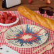 A bold and dynamic comic-style explosion paper plate inspired by classic pop art. Featuring vibrant bursts, halftone dots, and explosive energy in vivid red, black, and blue tones, this artwork captures the retro comic book feel with a modern twist. Ideal for fun, energetic themes that demand attention and nostalgia.