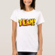 Make a bold statement with this women’s T-shirt featuring the retro comic style “Yeah!” graphic. With its vibrant yellow and red pop art lettering, this fun and eye-catching design adds a playful touch to your casual look. Perfect for comic book fans, pop art lovers, and anyone who enjoys colorful, energetic fashion.