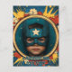 Great postcard for kids' birthdays who love comic books and superheroes. There is a circular frame with comic strilike illustration that you can fill with your own photo and your own text! This postcard is great for celebrating birthdays and school events for kids.