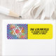Unique and fun pop art comics comic book star of David Bar Mitzvah return address mailing label. This comic book Bar Mitzvah address label is modelled after a comic strip like you'd see in the comics section of a newspaper or what you'd see in superhero comic books. It's done up in the pop art comic book style with bright colors, sunbursts and Jewish Star of David. The colors on this comic book themed Bar Mitzvah mailing label are bright blue, red, yellow, green, orange pink, black, and white.
