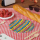 Check out this cute Sesame Street design featuring familiar faces in fun colorful stripes.