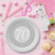 70th birthday party paper plates. Commemorative birthday celebration paper party plate with person's name, and the date of their birthday. A paper party plate for someone who is 70.