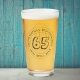 Commemorative birthday celebration glass with person's name, and the date of their birthday. A glass for someone who is 65. Outline number style.