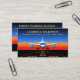 Commercial Plane © Sunny Mars Designs. Cool, colorful aviation flight school training business card template with airplane landing and touching down on tarmac with beautiful red and blue night sky background and lights on airport runway. Perfect for professional pilots, private charter serves, flight training centers, or any aviator, aerospace and mechanical engineer or any company in the aviation industry.