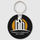 This commercial realtor keychain is chic and modern. Customize with your name and company information. It features a chic minimalist black and white line drawing of a building skyline and a simple orange sunrise for a realty agent who works with investment properties in business . Use this contemporary design for a professional real estate or property management group grand opening.