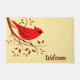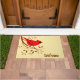 Northern red cardinal design on doormats with customizable text and background color