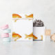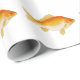 This wrapping paper features a common goldfish pattern with orange, tangerine, and yellow. Goldfish resemble wild carp; they have a small mouth, medium body, and forked tail fin. This hardy variety of goldfish is often found in garden ponds where they grow to 12 inches of more. Common goldfish come in a variety of colors including red, orange, yellow, bronze, black, white, and color combinations. This goldfish pattern paper is for aquarium fish enthusiasts and anyone that enjoys colorful fish art.