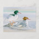 The perfect postcard to send greetings to a bird lover or anyone who enjoys the outdoors, wildlife and nature. From an original watercolor painting of Common Merganser, also known as Goosander, on the River Taff in Wales. This beautiful waterbird is a large seaduck. The iridescent green head of the male makes them easy to distinguish. The duck is remarkable for having a swawbill to grip their prey. Anyone who enjoys the beauty of birds and the countryside will love to receive this.