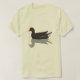 A digital vector illustration of a common moorhen swimming. You can see its reflection in the water.