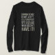 I love this shirt. I had written to the artist asking her if this picture was available on a shirt, and she wrote me back telling me where I could find the shirt. These shirts can be custom made to have a different saying. I loved this saying and went with it. The artist wrote me back later to tell me that she had seen my order go through. How's that for service? Pretty special. It's just as displayed. Perfect!