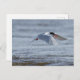 Common tern flying with a tiny smelt fish in its peak that was freshly caught at the end of April in Western Finland postcard.