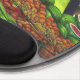 The plastic backing is nice and sturdy. The grippy pads underneath keep the mouse pad where I put it on my table. The pad the mouse sits on is cut well to fit the backing. The wrist pad is perfectly soft, supportive, and thick. I'm left-handed, and this mouse pad works just as well for me as it does for my right-handed friends. I'm the designer of HippieClecticHope products. I'm blown away by how well my intricate fractals turn out on the tangible items in the Zazzle Marketplace. This particular mouse pad ***appears*** like a 3D object... A mathematically-engineered rainbow black opal, inlaid under transparent fabric...