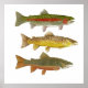 watercolor studies of a Rainbow, Brown & Brook Trout- 3 common species. From original watercolors by aquatic artist Thom Glace