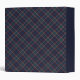 Traditional plaid pattern in navy blue, with bright blue, red, green and white highlights.