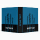 Silhouettes of communication towers with custom text. Vector icons with customizable color.