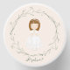 This beautiful and sweet First Holy Communion design of a brunette little girl praying peacefully on her special day is on a pale peach and sage background. Accented with a wildflower leaf frame. Cherish the great memories of your child’s first holy communion with this beautiful design. Check out the matching First Holy Communion accessories, stationery, and communion gifts.