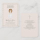 This beautiful and sweet First Holy Communion design of a brunette little girl praying peacefully on her special day is on a pale peach and sage background. Accented with a wildflower leaf frame. Cherish the great memories of your child’s first holy communion with this beautiful design. Check out the matching First Holy Communion accessories, stationery, and communion gifts.