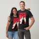 My 11 yo wore adult XL (5’7” 165#). The 8yo is small framed. She wore adult small and tied it in the back. Grandma wore adult large with long sleeve shirt underneath. Tall girl adult medium. Dark haired male adult large. Good quality dark Heather gray, Gildan brand shirt. -it was next up from basic choice and cost about $20 per shirt. Not too thick or thin. Washed and dried well, no major shrinkage. Not see-through. Can wear a bra under it fine. Screen print is just as shown and well done, front and back.